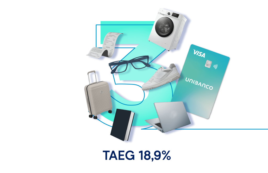 Fracione as compras a partir de €150 em 3x na APP UNIBANCO