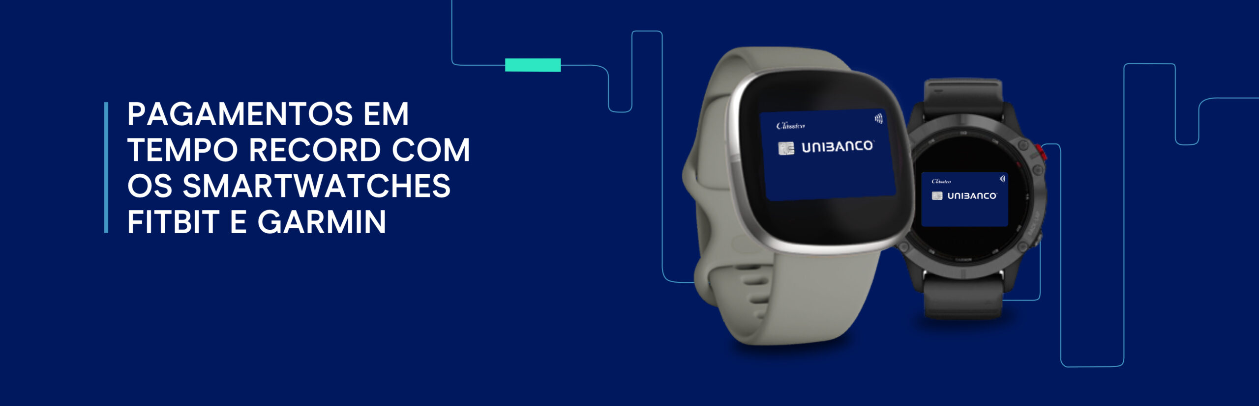 Se tem um smartwatch Fitbit ou Garmin e um Cartão Visa ou Conta UNIBANCO, tem tudo o que precisa! Pague sem complicações.